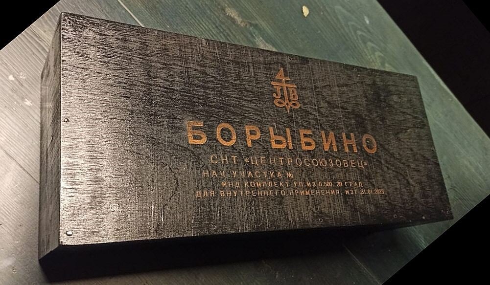 Сохнет на воздухе быстро. Дальше - достаю ноутбук и лазерный резак. Собираю, подключаю, наношу надписи на верхнюю крышку. Тут - ваш полет фантазии. Я люблю а-ля СССР. Что- нибуть утилитарное. Можно надпись и на готовом ящике сделать, но на крышке отдельно проще, она банально тоньше, не нужно сильно подкладывать ничего под ноги резака. [если читателю интересно, могу запилить короткий пост про китайский лазер и как гравируется]