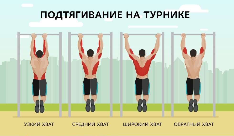 Занятия на перекладине улучшают общую физическую подготовку, делают тело стройнее и рельефнее. О том, каких результатов можно добиться с помощью подтягиваний, читайте в нашей статье. Занятия на турнике При подтягивании на перекладине работают следующие группы мышц: Кроме того, во время подтягиваний необходимо постоянно удерживать на весу массу собственного тела. Поэтому на занятиях идет дополнительная нагрузка на позвоночник и пресс. Виды подтягиваний и их воздействие на мышцы