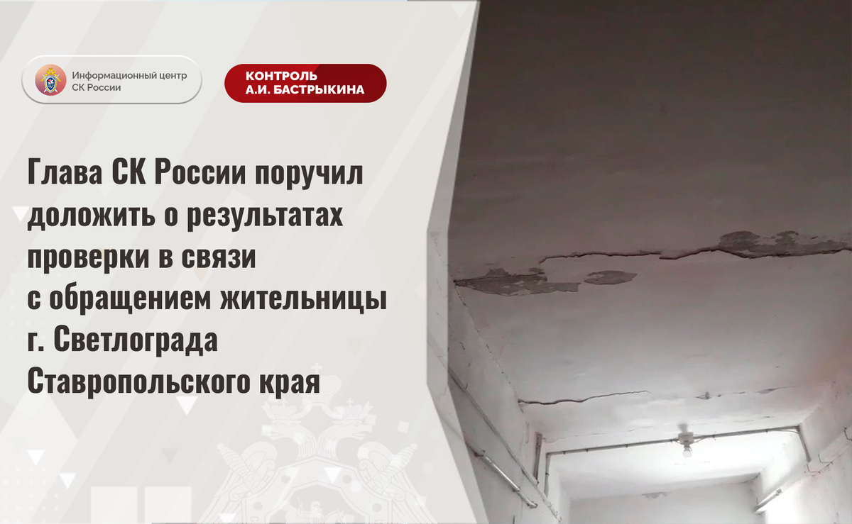 Глава СК России поручил доложить о результатах проверки в связи с обращением жительницы г. Светлограда Ставропольского края