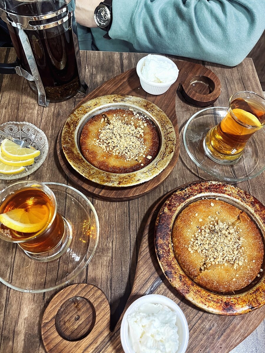 Хрустящее тесто катаифи, много тянущегося теплого сыра, ореховая крошка и сахарный сироп — только не потеряйте этот пост и обязательно сохраните инфо для своей поездки в Баку. Обещаю, не пожалеете. Такого вкусного кюнефе мы не ели даже в Турции! Гуляем сейчас по вечернему Баку и вдруг резко кааак захотелось сладенького с азербайджанским чаем в турецкой рюмке. Переглянулись — ну кюнефе, однозначно. Здесь оно очень популярно, да и в Стамбуле мы им объедались регулярно. Больше из восточных сладостей любим, наверное, только катмер. Зашли в первую попавшуюся кафешку, заказали чайный сет и два желанных десерта. Их неожиданно подали со сливочным пломбиром, и мамочки, ну как же это оказалось вкусно! Буквально лучшая версия этого блюда, которую нам только доводилось пробовать. Глядя, с каким удовольствием мы выкатываем глаза и как расплываемся в улыбке с каждым кусочком, прохожие за окном замедляли шаг, а хозяева заведения, кажется, тайно угорали. Что входит в это кулинарное чудо: Самой каф