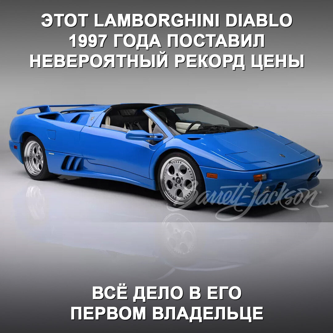 Этот Lamborghini Diablo 1997 года побил рекорд цены на аукционе, что неудивительно, учитывая первого владельца машины 😎 Синий суперкар Lamborghini Diablo VT Roadster собрали для Дональда Трампа и принадлежал бизнесмену до 2002 года. Автомобиль окрасили в уникальный для модели цвет под названием Blu Le Mans и оснастили именной табличкой Donald Trump Diablo 1997. На момент торгов его пробег составлял около 25 000 км. Сердце этой Ламбы — 5,7-литровый V12 на 492 л.с., коробка — МКПП-5, привод — полный. Максималка машины — 324 км/ч, до сотни она разгоняется за 4,4 сек. Итоговая цена автомобиля — $1 100 000. Это новый рекорд модели, причём несколько месяцев назад подобный Diablo VT Roadster с пробегом всего в 2 400 км ушёл за $520 000 — в два раза дешевле. Как думаете, стоит имя первого владельца этого родстера такой доплаты? 🤔 #дромновость #аукцион #рекорд #трамп #lamborghini