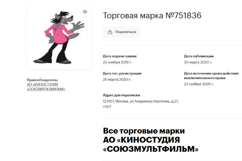 Акционерное общество «Киностудия «Союзмультфильм» и ООО «Союзмультфильм» обратились в Арбитражный суд Волгоградской области с иском к индивидуальному предпринимателю из Камышина. Они потребовали взыскать 50 тысяч рублей компенсации за нарушение исключительных прав при продаже персонажей «Волк» (товарный знак № 751836) и «Заяц» (товарный знак № 756546) по известному мультфильму, а также возместить судебные издержки и оплату госпошлины.