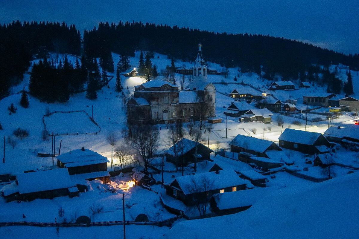 Кын – небольшое старинное село в Пермском крае, до которого нет асфальтированных дорог. А когда-то это был административный центр Кыновского округа пермского имения Строгановых. Расположено село на берегах Чусовой и реки Кын. И поэтому здесь круглый год туристы и путешественники. От других село отличается непередаваемой аутентичной атмосферой настоящей русской деревни с покосившимися домиками и огромными снежными языками, свисающими с крыш. В прошлые выходные посчастливилось там побывать большой и веселой компанией уральских путешественников. От Екатеринбурга до Кына ехать 450 километров, но есть дорога в два раза короче. Она проходит через Илим, Колпаковку и Рассоленки. Дорога пустынная, но вполне хорошего качества, а самое главное её чистят. Мы доехали за четыре часа. Летом, говорят, эта дорога очень плохая и лучше ехать через Лысьву. Остановились мы в одном из нескольких гостевых домов. Первое, что мы сделали, покатались на санях прикреплённых к снегоходу. Зимний вариант «банана»