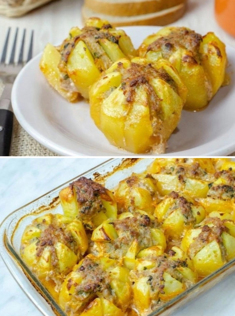 Забирай рецепт « картофель с фаршем в духовке»🔥