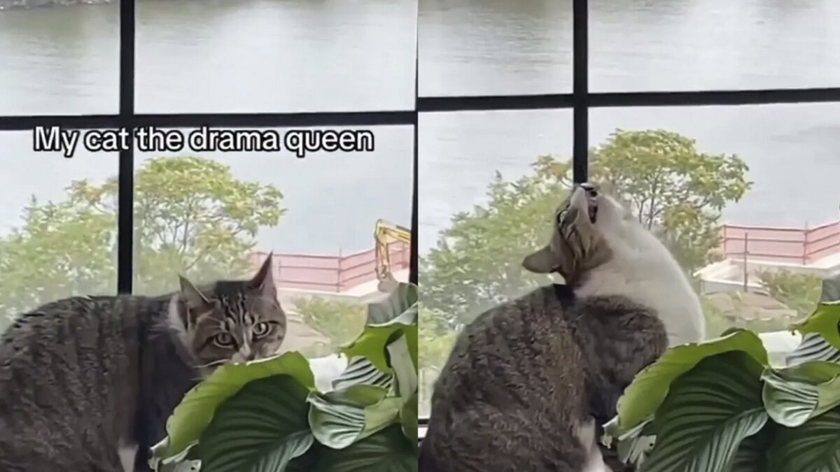 Кошка узнала, что ей нельзя есть растения, и закатила драму