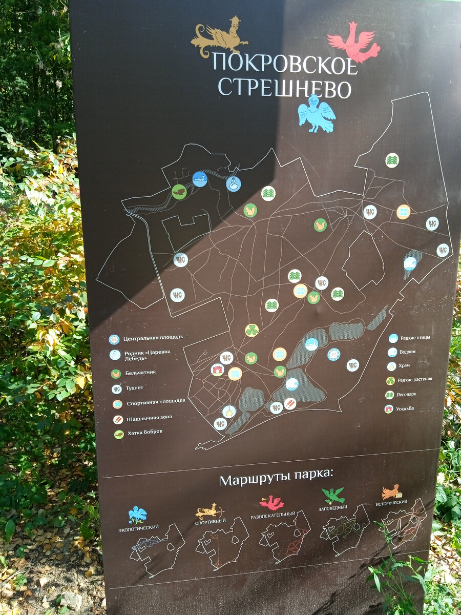 Ещё немного погуляем по природной зоне отдыха, но уже облагороженной и очень удобной. Это прогулка к прудам на территории Покровского-Стрешнева. Именно часть этой парковой зоня можно увидеть из электрички или поезда, пролетающего мимо расположенной неподалёку станции 2-го Московского Диаметра. Идём по "Развлекательному маршруту". В этой части парка аккуратные газоны, поля для игр, пикниковые беседки, детские площадки. На прогулку рассчитывайте минимум 2 часа. Детям здесь понравится. Взрослым - тоже. Берите велосипеды и самокаты. Есть где покататься, территория большая. И красивая! Двигаясь по дорожкам парка, рано или поздно вы придёте к прудам. Тем самым, которые когда-то были заложены как пруды для рыбного хозяйства имения ещё в 17 веке по повелению боярина Стрешнева. Но сейчас этой функции у них нет. есть просто пейзажная красота, которая поражает всех, кто сюда приезжает. Как кто-то написал: "Старинная усадьба с пейзажным парком и дикий лес с туристической тропой остались позади. Мы