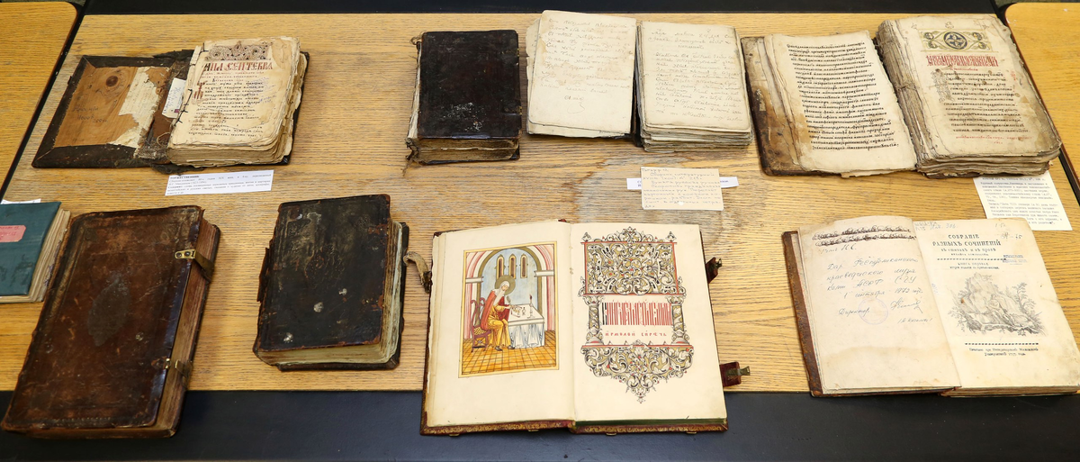 В Музее редкой и рукописной книги Научной библиотеки СГУ им. Питирима Сорокина хранится уникальная коллекция рукописных и старопечатных книг. Они настолько ценные, старинные, что доступ к ним ограничен. Прежде чем взять эти книжные памятники в руки, исследователи надевают белые перчатки. О самых ценных экземплярах рассказала журналу Verbum Екатерина Прокуратова, кандидат филологических наук, доцент кафедры русской и общей филологии СГУ им. Питирима Сорокина.