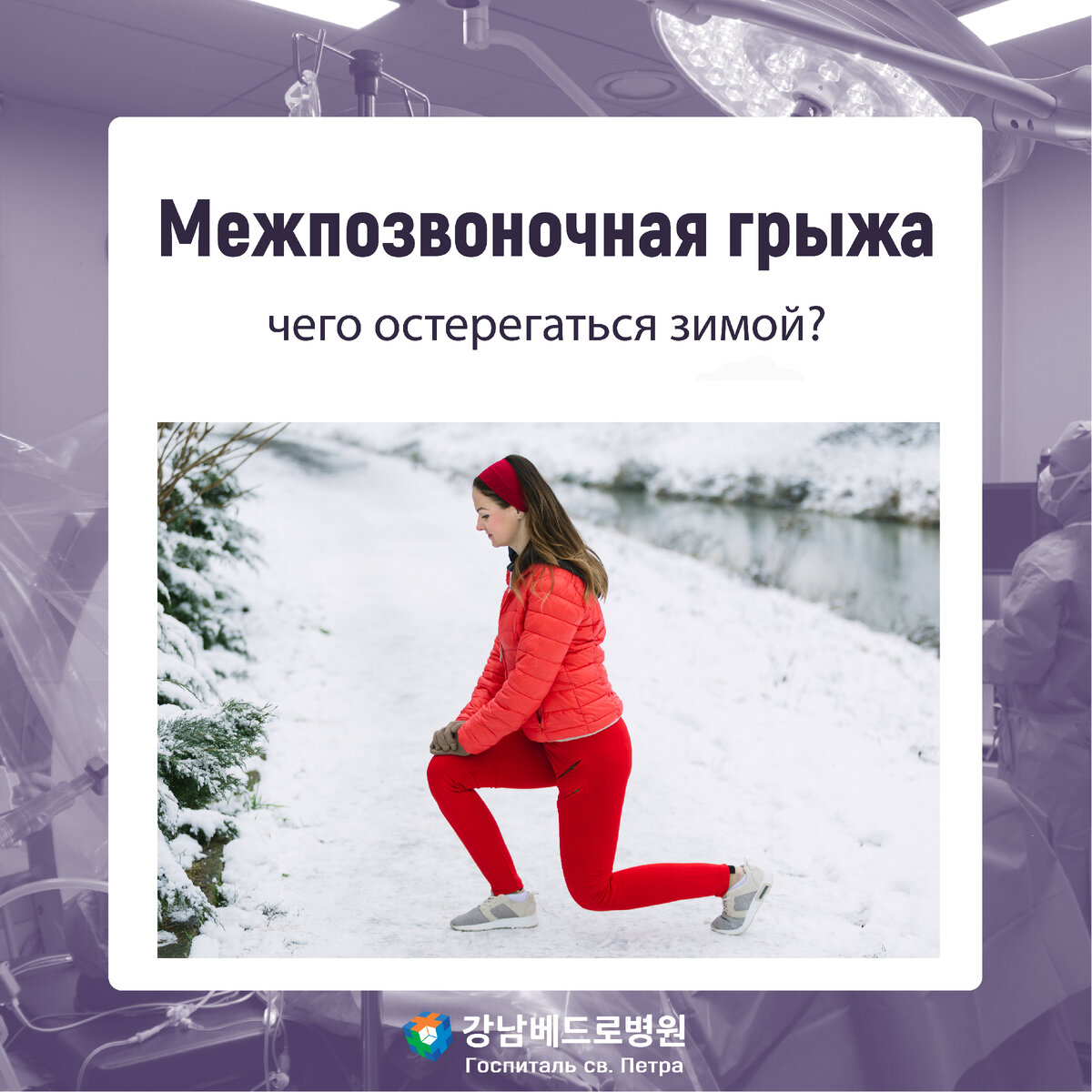 Зима – сезон обострения многих заболеваний. В холоде спина становится более тугоподвижной, возникают дискомфорт и даже боль. Многие считают это происходит только потому, что в холод все ткани тела сокращаются. Но только ли в этом дело? Межпозвоночная грыжа – смещение хрящевидного межпозвоночного диска, который начинает сдавливать ближайшие нервные волокна, вызывая боль. Если в области поясницы возникает боль, которая сохраняется даже через 2 недели после полноценного отдыха, либо в области ягодиц и ног появляется онемение, нужно подозревать межпозвоночную грыжу. Зимой у тех, чей позвоночник не в самом лучшем состоянии, возрастает вероятность появления грыжи. В холодное время мышцы сокращаются, а кровообращение замедляется. Также, зимой люди меньше ходят и гуляют на свежем воздухе, больше проводя время в закрытом помещении за просмотром смартфона либо телевизора. При этом позвоночник долгое время находится в неправильном положении, что и повышает вероятность заболевания. Еще одной причи