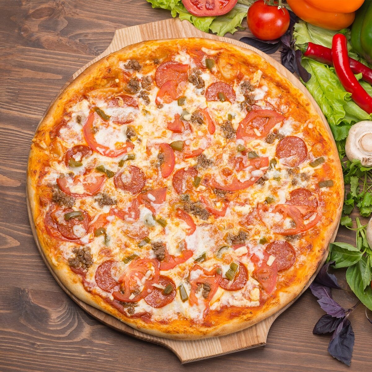 Блюдо для ВЗРОСЛЫХ. Для тех кто любит "погорячее". Она (пицца) невероятно вкусная, ароматная и остренькая. Такую пиццу еще называют "Дьяболо". Так что если Вы такой же страстный любитель "чертовски" вкусной пиццы, то приглашаю к столу. Ингредиенты для теста сухие дрожжи_______________________________________ 1 пакетик теплая вода__________________________________________ 225 мл. мука__________________________________________________ 350 г. сахар_________________________________________________ 1 ч.л. оливковое масло____________________________________ 3 столовых ложки соль__________________________________________________ по вкусу Ингредиенты для начинки колбаса салями_____________________________________ 50 г. колбаса пеперони__________________________________ 50 г. томатный соус______________________________________ моцарелла__________________________________________ 2 шарика каперсы_____________________________________________ 1/2 ст.л. красный перчик чили__________________________