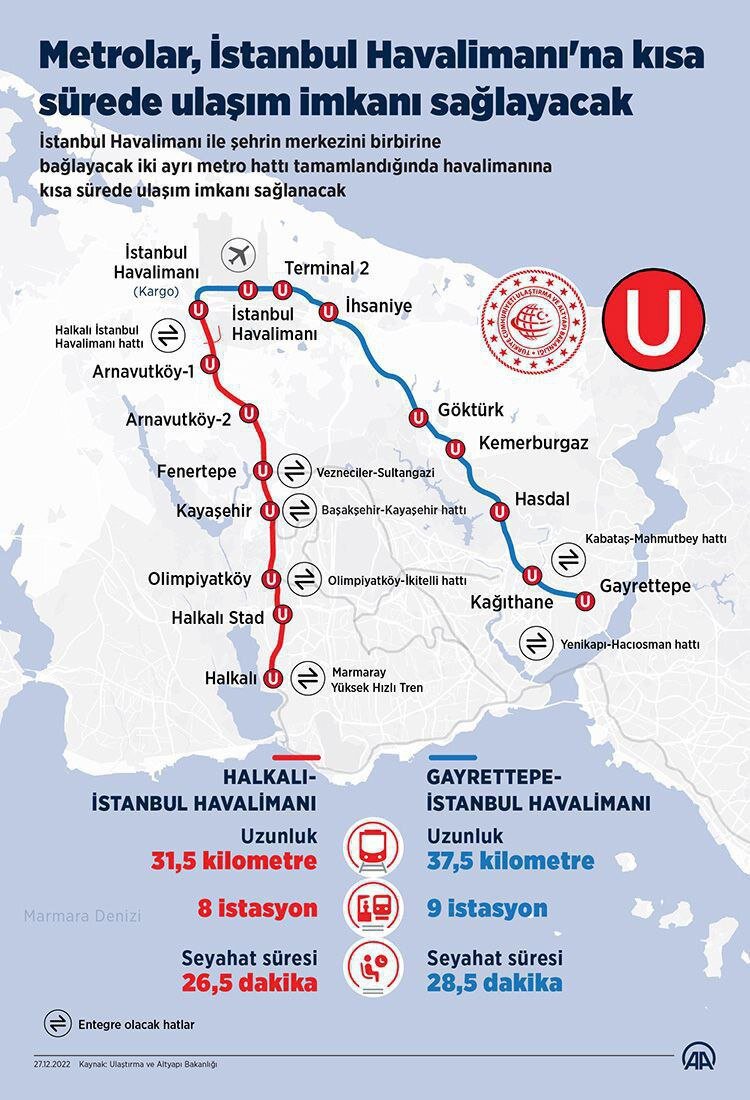 Также планируется продолжить линию M11 от Нового аэропорта до Halkalı.