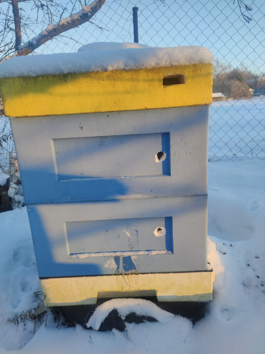 Здравствуйте читатели. Приехал я в деревню и увидел следующую картину, два из трёх пчелиных домиков испорчены непонятным образом, а почти все пчелы съедены. Мои пчелы зимуют в этих домиках уже не первую зиму, но такое случается впервые. Все корпуса, почти со всех сторон продырявлены. Возле домиков лежат пчелы. Я пытался вычислить вредителя, но безуспешно. Судя по повреждениям, наверняка какая-то птица. Для грызунов очень маленькое отверстие. Теперь встал вопрос, как ремонтировать эти домики и что делать с этим вредителем.
