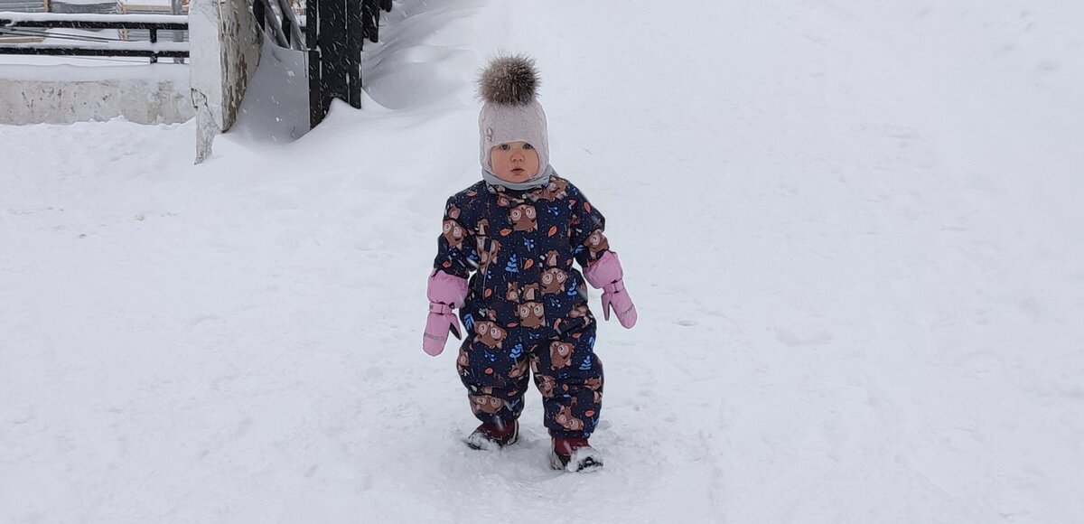 Привет. Я прям радостная, радостная сегодня! Дочь наконец-то гуляла на своих двоих, без какого-либо транспорта. В течение 1,5ч. Конечно, в сложно проходимых местах я брала ее на ручки. Но это было от силы минут 15 за все время прогулки. Дошли сначала до центра детского творчества, который от нас через дорогу находится. Постояли там, детишек, проходящих мимо поразглядывали. По лестницам (куда же без них любимых!) поднимались. Затем направилась в сторону соседней пятерочки. Шли до нее минут 30 наверно😀 для сравнения, я за 10 минут дохожу. И это совсем не то же самое, что катить дочь на санках. Когда качу её, мне тепло. А вот стоять на одном месте, проходящих мимо разглядывать и каждому "пока" говорить ... Короче, замёрзли у меня ноги в моих теплющих нордиках знатно! Разными уговорами, приговорами приходилось Майку подгонять... "Смотри, вон Ляля едет в коляске, давай за ней!" Или "собачка впереди, идём догоним!". В пятерочке была передышка, в тележке. Нравится Майке в ней кататься . На