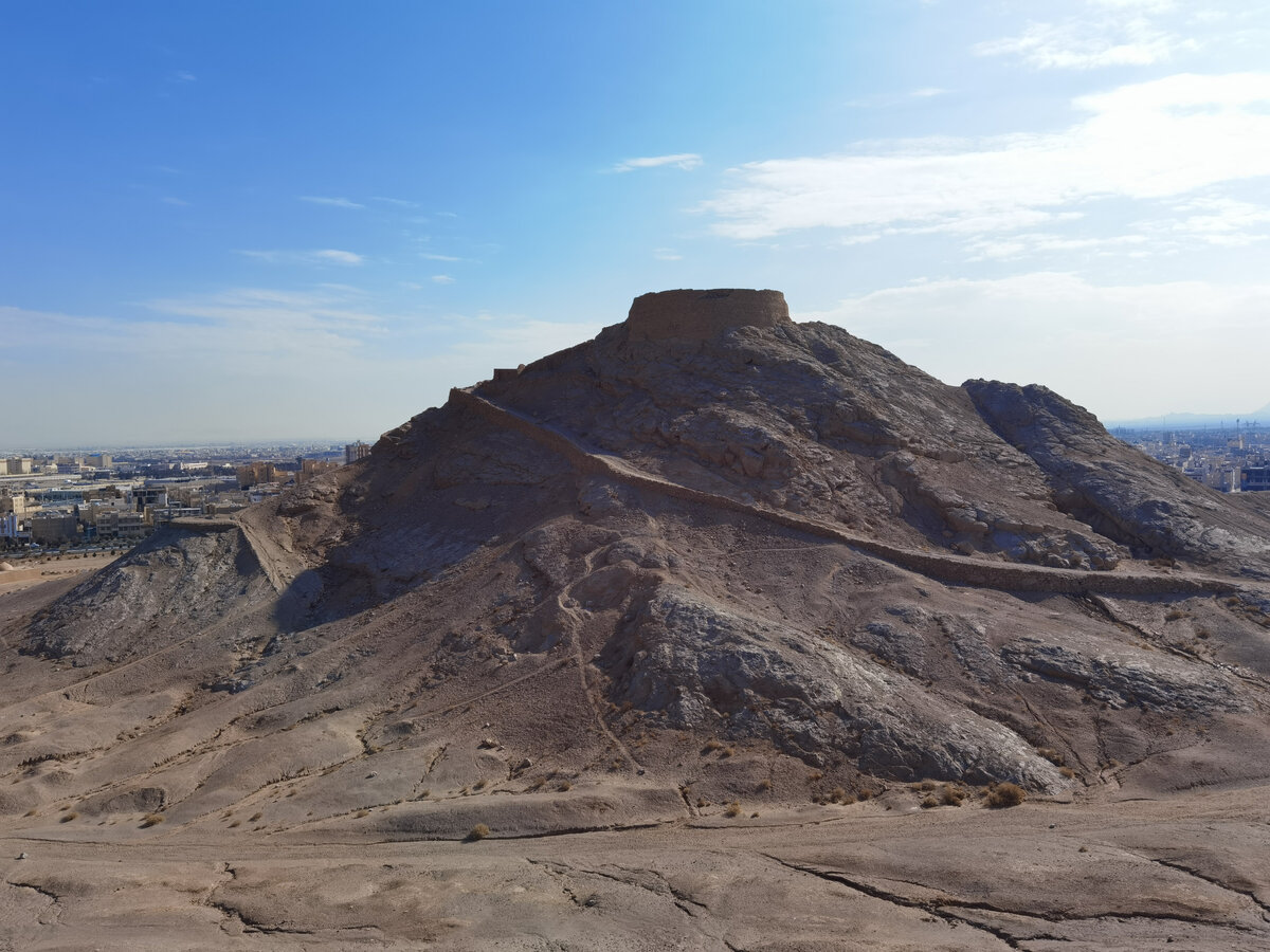 Один из примечательных объектов Йезда - погребальные конструкции под названием Башни молчания. Они находятся за городом и представляют собой круглые кирпичные башни на вершинах холмов. К счастью, они снабжены поясняющими табличками, вводящими в курс дела.