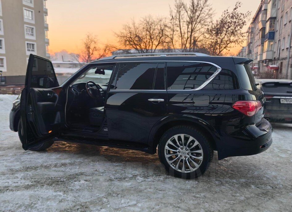 В Барнауле можно приобрести восьмиместный Infiniti QX80 2015 модельного года, который имеет максимальную комплектацию. Цена автомобиля составляет 4,05 миллиона рублей. По прошествии нескольких часов цена была снижена до 3,95 миллионов рублей.