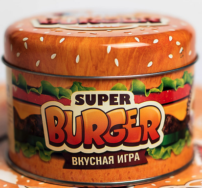 Супер-Бургер — это весёлый патигейм, рассчитанный на компанию от 2 до 10 человек. Каждый игрок выступает в роли повара, стремящегося приготовить самый огромный бургер по собственной рецептуре. Игра чем-то напоминает Уно, но вместе с этим имеет собственный фичи. Какие — узнаем прямо сейчас. Как и в Уно, в Супер-Бургере игроки набирают по 7 случайных карт из своеобразной колоды кругленьких карт, а затем по очереди делают ходы либо "в цвет", либо "в номинал". А дальше начинаются расхождения. Как мы знаем, любой бургер начинается с булки. Так что если у первого ходящего игрока нет булки, ходит следующий по очереди, если у него есть булка. Ну а дальше игроки выкладывают начинку. Начинка бывает 4 цветов: жёлтый, багровый, фиолетовый и зелёный. Как в Уно, да? Так что ходить нужно либо в цвет, либо в начинку. Но можно выложить две одинаковых начинки разом, даже если они разных цветов. Например, зелёный и жёлтый ананас сгодятся, чтобы выложить их одновременно. Но кроме обычной начинки, есть ещё