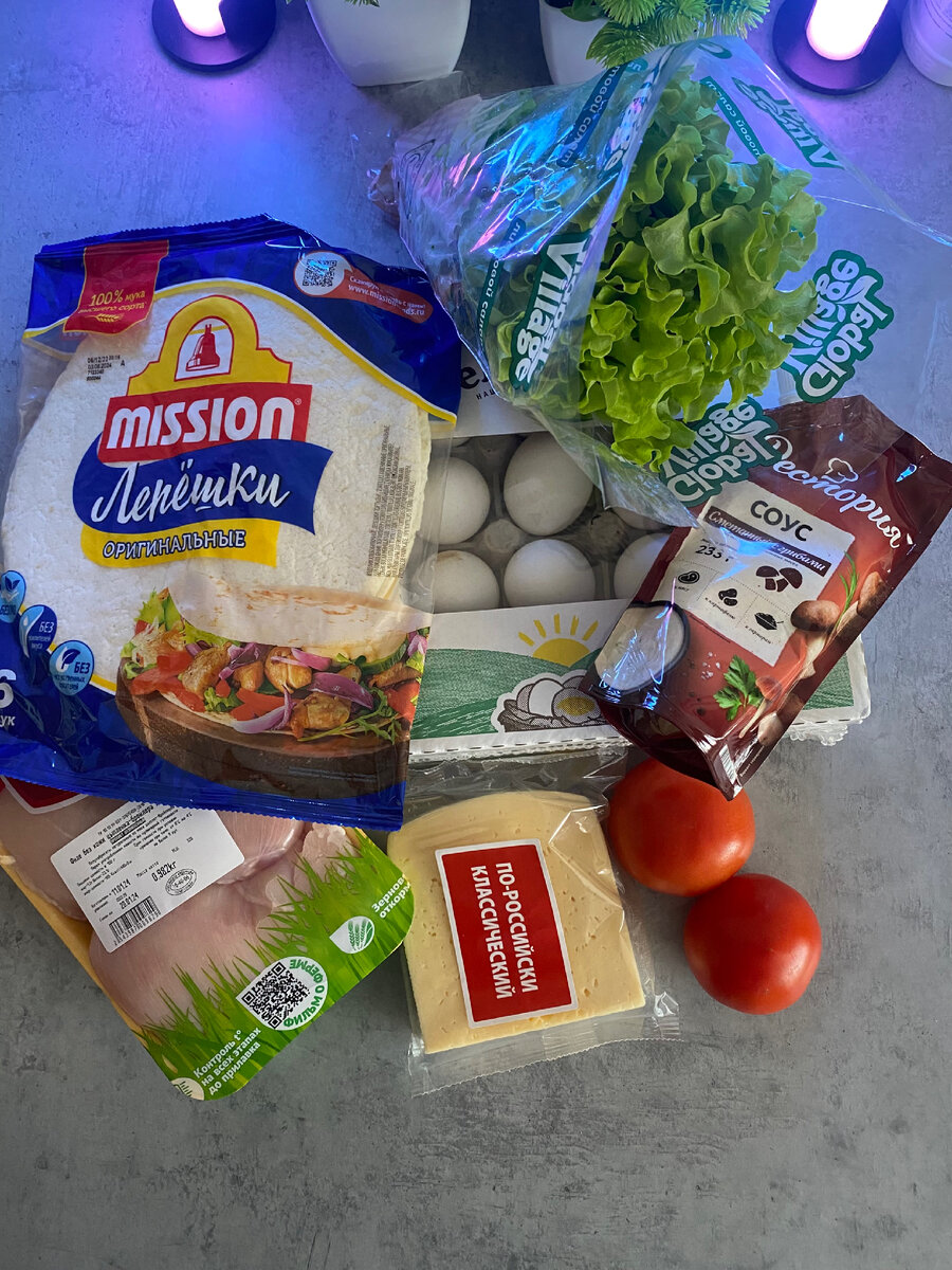 Как все мы знаем, завтрак является первым и необходимым приемом пищи для каждого человека. И на завтрак стоит есть только сбалансированную пищу, богатую белками, жирами и углеводами. Первый прием пищи должен насытить вас на день, чтобы до обеда вам не хотелось чего-нибудь перекусить. У многих стоит вопрос, что же приготовить на завтрак, чтобы это было не только быстро и вкусно, но и с небольшим количеством калорий. И вот я нашла еще один рецепт сбалансированного, но самое главное полезного завтрака, который отлично подойдет тем, кто следит за своей фигурой, или же худеет и собирается приводить себя в форму, при этом по вкусу он ничем не уступает тому же бургеру из Макдоналдса. Речь о сэндвичах в тортилье с овощами и курицей. А в конце я рассчитаю и покажу КБЖУ такого завтрака, так что советую дочитать до конца. Итак, давайте приступим к приготовлению. На 4 таких сэндвича нам понадобится: Способ приготовления: 1.Сначала мы разрезаем куриное филе на большие кусочки, не нужно мельчить и