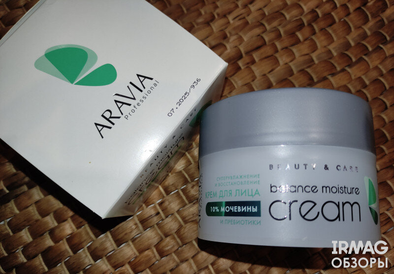 Обзор на крем Aravia Professional Суперувлажнение и восстановление Balance Moisture Cream Под Новый год я стала обладательницей еще одного крема от Aravia Professional – Суперувлажнение и восстановление Balance Moisture Cream. Изначально я не планировала его использовать сама, но внезапно закончился мой рутинный крем и пришлось импровизировать. Сам производитель описывает крем так: "Это лёгкий, быстро впитывающийся крем с 10% мочевиной для ежедневного ухода за кожей лица. Подходит для обезвоженной кожи всех типов, включая комбинированную и жирную. Суперувлажняющая формула обогащена натуральным растительным пребиотиком, восстанавливающим естественную микрофлору кожи, что способствует укреплению ее защитных функций. Таким образом снижается неблагоприятное воздействие факторов внешней среды." На самом деле, крем упакован в слюду и бумажную коробочку с подробным описанием продукта. Внутри банка-шайбочка объемом 150 мл. Этого количества крема хватит на продолжительное время, поскольку расхо