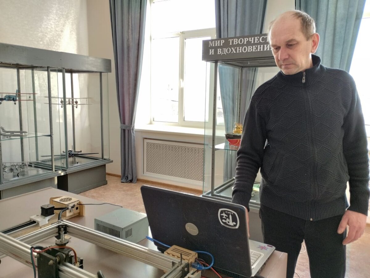 Ребята увидели, как работает принтер, методично совершая одни и те же движения. Пока они слушали преподавателя, тот печатал заданную программой деталь. Работающая техника – это всегда интересно. Привлекли внимание и станки с числовым программным управлением. Один (маленький) собрал ученик Кирилл Юргиль, лазерный сделал А.А. Чащин. Дети увидели, как с помощью лазера можно выжечь картины, портреты, сделать надписи. Уходить ребятам не хотелось: так увлекательно рассказывал Алексей Александрович о работе станков и всей техники.