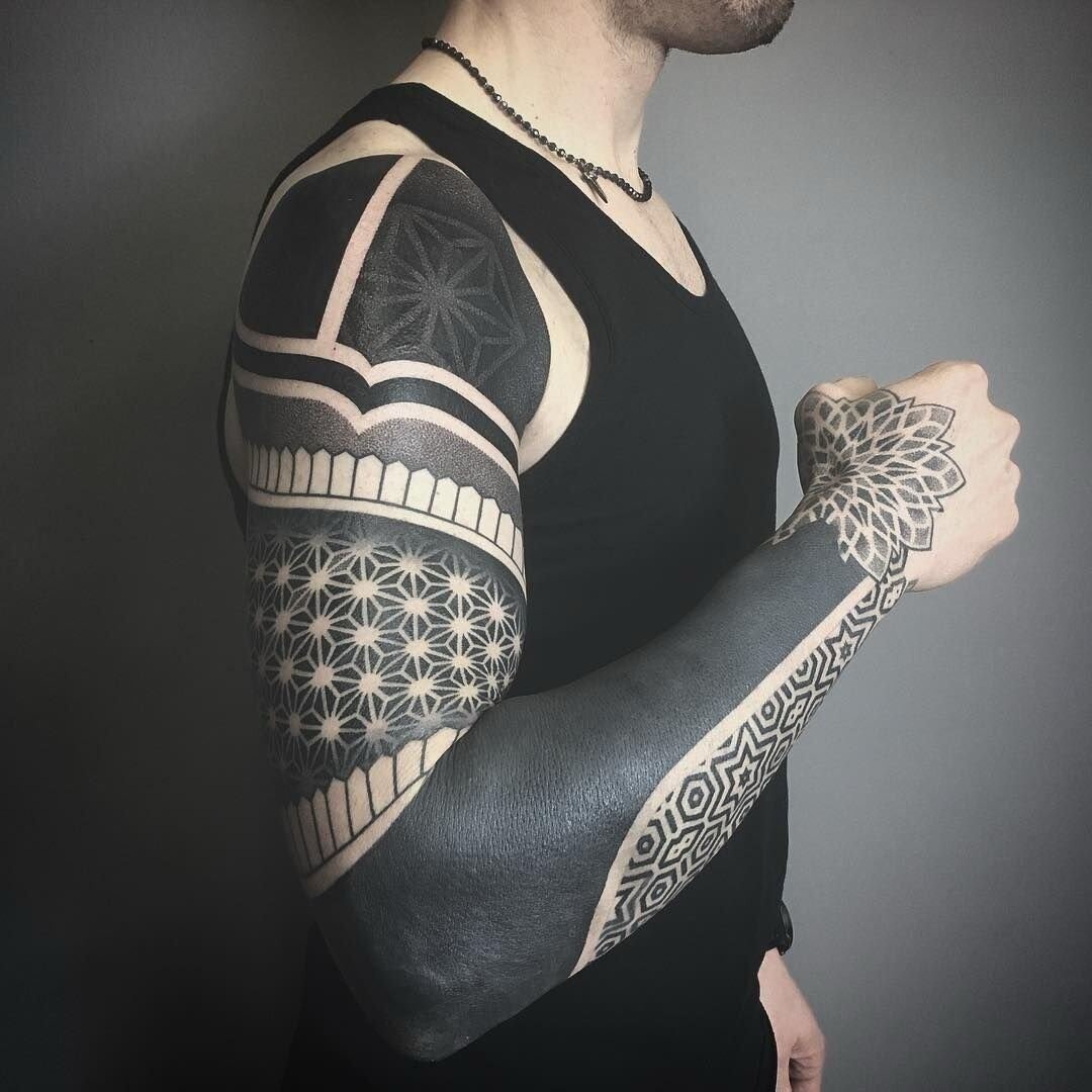 Сегодня разбираем один из самых контрастных и выразительных стилей татуировок - блэкворк. Само название подразумевает присутствие в эскизах больших площадей черного (и его полутонов) закраса. Корни стиля уходят в глубокую древность. Именно в традиционных этнических татуировках впервые встречались плотно закрашенные участки рисунков. В "свет" технику вывезли уже моряки, которые посещали далекие острова. А новую популярность стиль обрел к концу прошлого века. В большинстве случаев блэкворк применялся для перекрытия старых неудачных работ. Но постепенно стал обрастать собственными дизайнами. Работы в этом стиле строятся на принципах симметрии и пространственного мышления, где важна сама форма рисунка. Среди наиболее часто встречающихся элементов: геометрические фигуры, полностью закрашенные части тела, орнаменты и узоры. При этом они могут быть как самостоятельными элементами, так и частью сложных композиций. Эстетически блэкворк сочетается со многими стилями татуировки. Сама техн