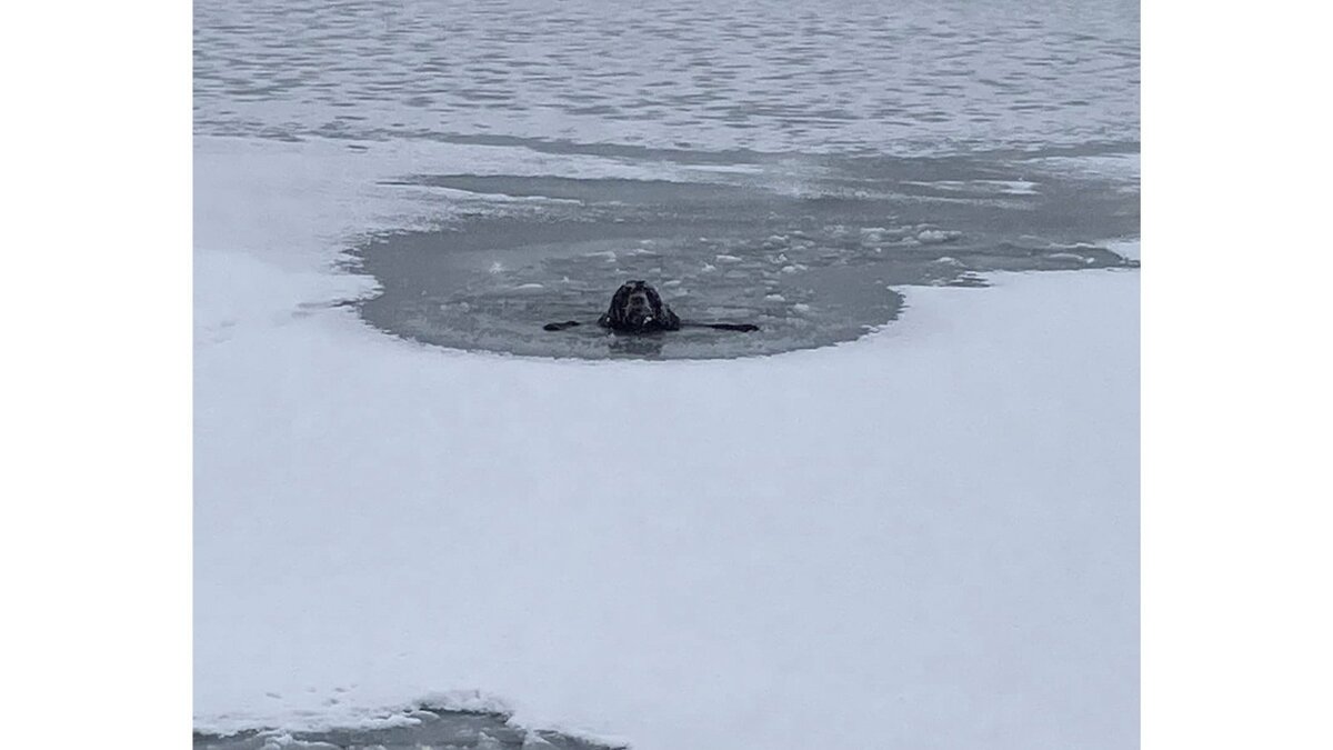 Мужчина нырнул в ледяное озеро, увидев умоляющего о спасении пса