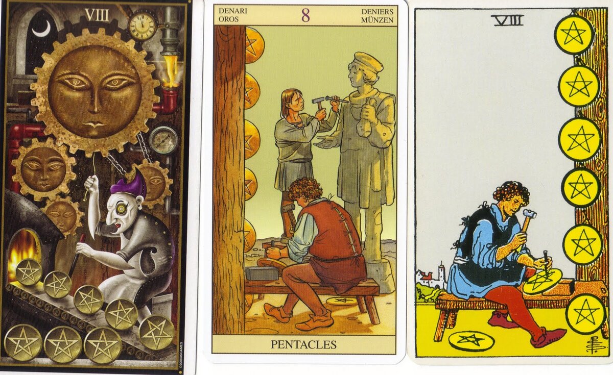 Я решила начать цикл по расшифровке карт Таро. Сегодня разберем Восьмерку Пентаклей.
