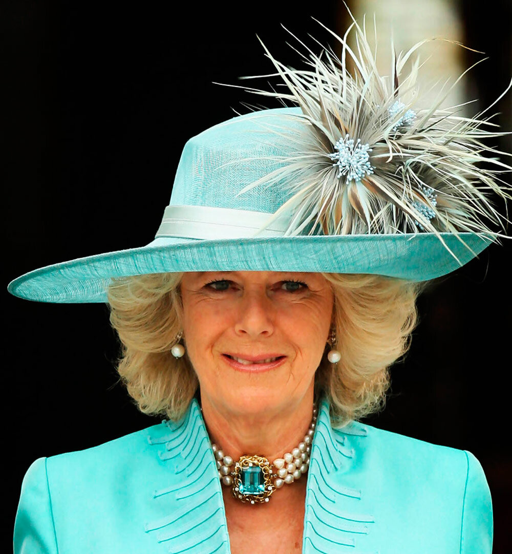Камилла дополняет наряды жемчужно-аквамариновым украшением достаточно часто. Можно смело сказать — это одна из ее любимых драгоценностей, в чем нет ничего удивительного. Ведь это ювелирное изделие действительно поражает великолепием. Идеальные жемчужины смотрятся самодостаточно и выразительно. Они не затмевают, а наоборот, делают акцент на еще более значимой детали украшения — крупном аквамарине. Что самое интересное, в зависимости от цвета наряда и характера освещения, драгоценный камень словно меняет свой оттенок, подстраиваясь под нужную цветовую палитру. Идеально!