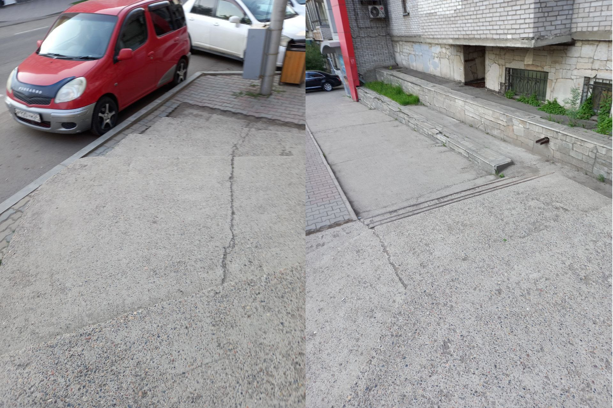 Про пандусы обращение, мол, в УДИБе (погуглив узнал, что это управление дорог и благоустройства) или ДГХ (департамент городского хозяйства).