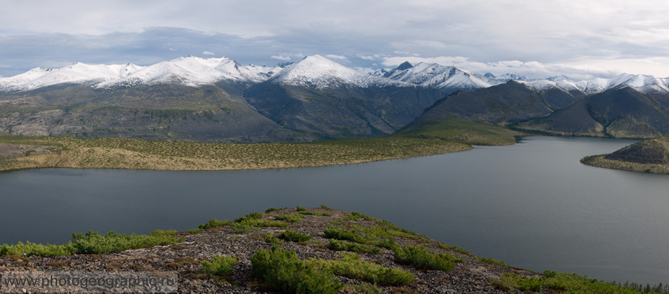 После нескольких дней затяжной непогоды, этот день 25-го июля, когда вышли к заветному озеру, был настоящим подарком. Наконец-то мы увидели солнце. Пока обходили залив озера, пока отыскали удобное место для стоянки, пока ставили лагерь и готовили обед, времени прошло немало. За это время та облачность, которая осталась от непогоды куда-то растворилась, но с юго-запада вновь потянулись щупальца облаков. И хотя свет мне не нравился и хотелось отдохнуть, всё же заставил себя залезть на склон горы, откуда мог снять озеро. Наученный горьким опытом, понимал, что здесь лучше не ждать чего-то более интересного, а нужно брать то, что дают. Иначе может и этого не быть.