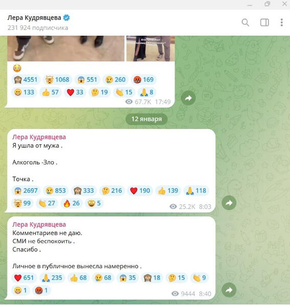 В последнем выпуске программы «Звезды сошлись» знаменитость внезапно заявила, что не планирует разводиться, что вызвало возмущение у публики. Гость программы Прохор Шаляпин поинтересовался, неужели звезды снова нашли общий язык. Ответ Кудрявцевой был уклончивым.