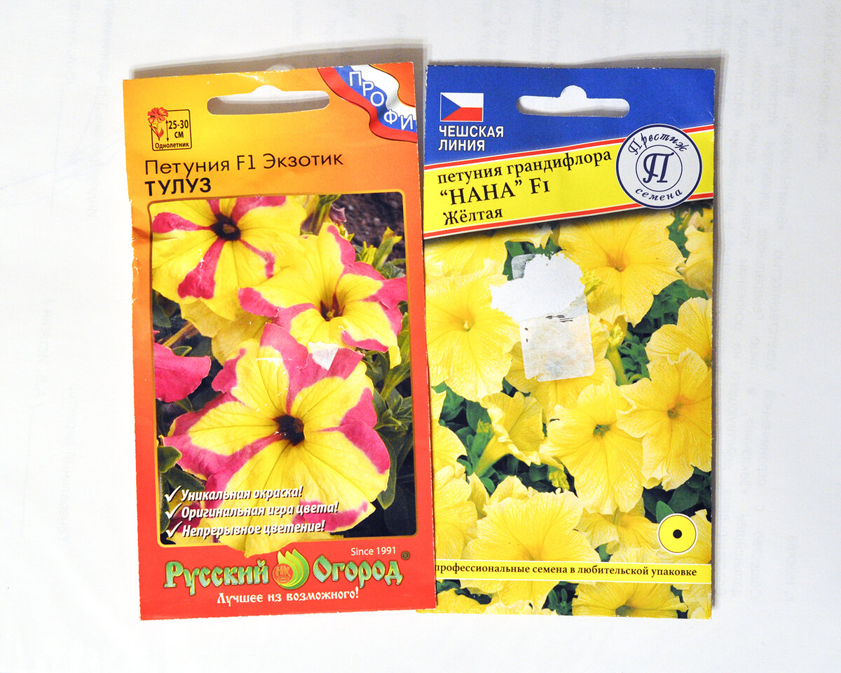 У меня в последнее время какая-то тяга к жёлтому цвету. Начиная от каких-то элементов в интерьере, заканчивая цветами. Психологи говорят, что жёлтый пробуждает в людях позитивное настроение. И в этом сезоне я сделала ставку на жёлтые петуньки. Выбрала два сорта: «Нана». И «Тулуз». Тут очень вкусное сочетание. Как сорбет жарким летним днём :) Семена «Престиж» меня ещё не подводили. И это касается не только петуний. А вот «Русский огород» попал ко мне впервые. По дате всё хорошо. Посмотрим на всхожесть. Другие оттенки я буду уже покупать ближе к маю. Потому что именно жёлтые мне ни разу не попадались в продаже. А душа просит :) Обычно во всех садовых центрах классический микс: белые, розовые, красные. Мама вроде бы планирует высаживать только махровые. Поэтому можно ещё и у неё прихватить несколько стаканчиков для разнообразия. Разговаривайте с цветами! И они вам ответят :)