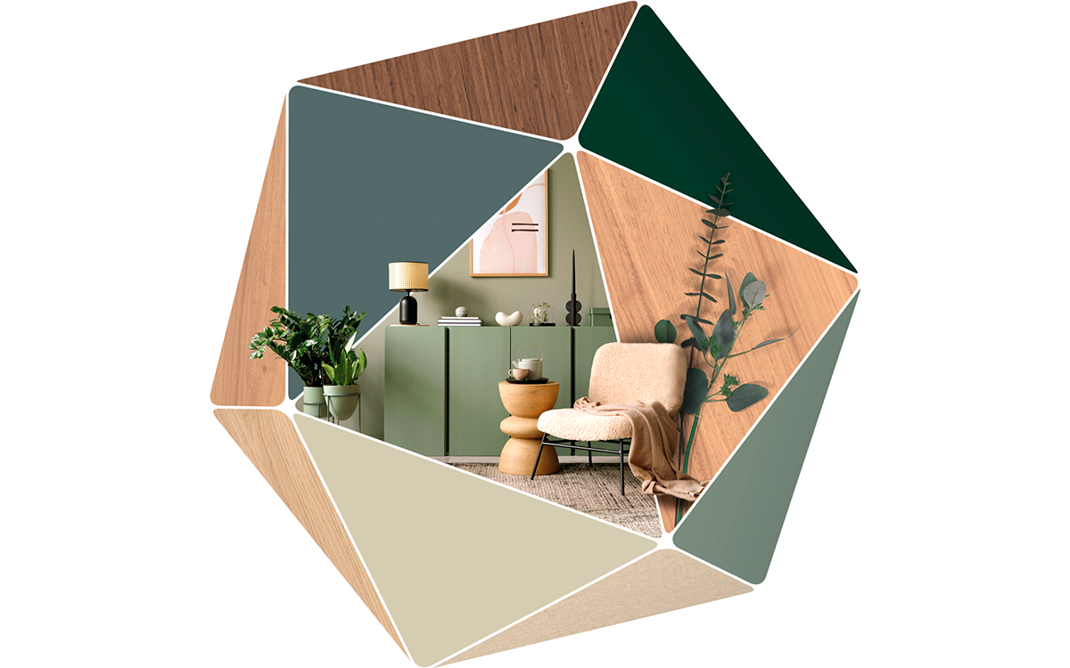 Новая коллекция декоров поражает своими зелеными оттенками, которые напоминают о природе, натуральности и экологичности. Особой популярностью пользуются матовые и приглушенные оттенки – от светлых до темных. Декоры в зеленых оттенках хорошо сочетаются со светлыми натуральными древесными декорами или с фактурными репродукциями текстиля.