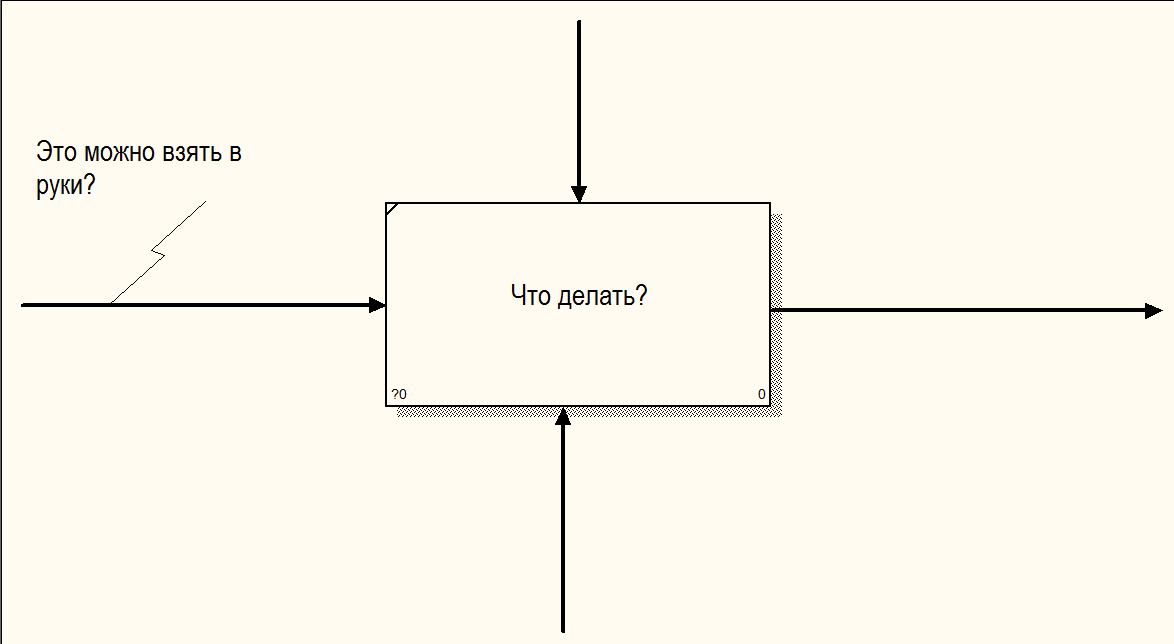 Поэтому лайфхак. Когда подписываете стрелку в IDEF0, спросите себя "Я могу это взять в руки?". Если мысленно взять в руки не получается, то вы скорее всего рисуете чушь.