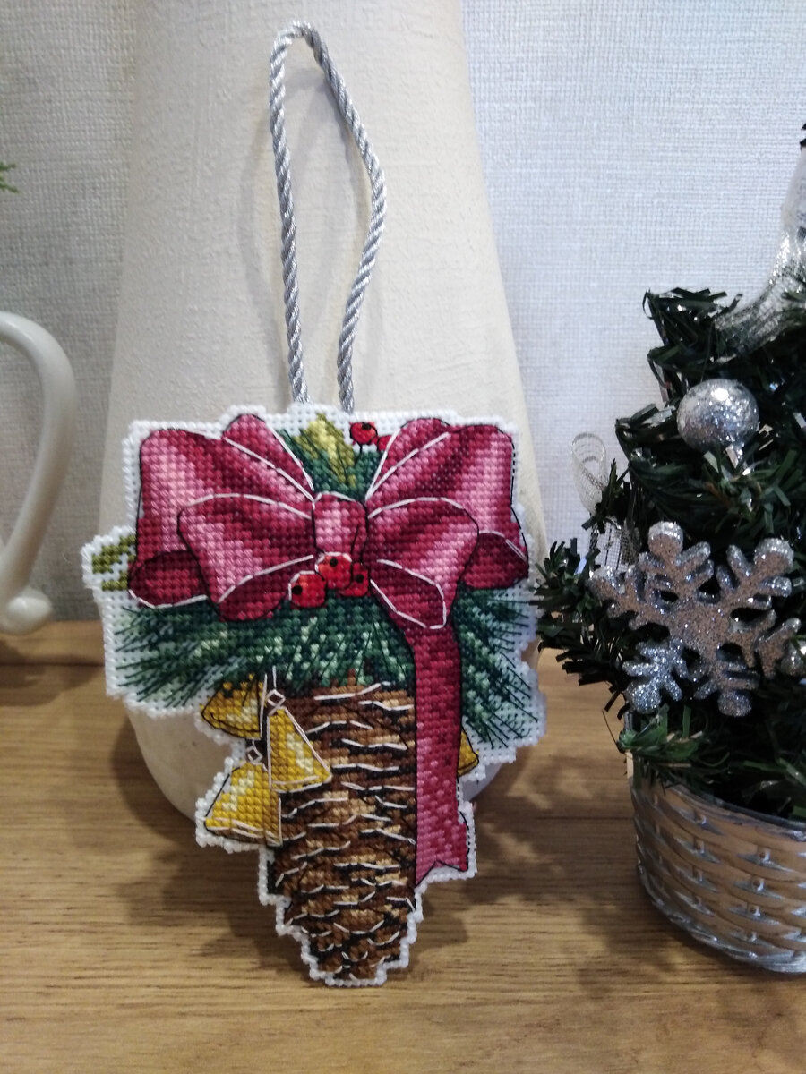 Добрый день, дорогие читатели! С оглушительной скоростью пролетел первый месяц нового года. Пора подвести итоги. Не совсем довольная итогами за 2023 вышивальный год, в этому году, с самых первых его часов, я ринулась к своей вышивке с новыми порывами и надеждами. И ночью 1 января, между 3-4 часами стартовала с рождественской шишкой. Это вышивка на пластике. В результате, к концу января у меня состоялся первый в этом году финиш. Ох, как она мне понравилась! Не могла от нее оторваться. Бекстича много и он великолепен! Вышила его за один вечер, с огромным удовольствием. Шишка и без него была очень красивой, а тут стала просто роскошной. Хорошо получились фрузелки в ягодах, правда их рекомендовали делать двумя нитками в один оборот, я же сделала в два, получилось отлично. Люблю заниматься оформительской работой, поэтому ее никогда не откладываю. Во внутрь шишки вложила хороший кусок синтепона, игрушка получилась объемной и солидной. Есть мысль вышить еще одну такую шишку, только с голуб