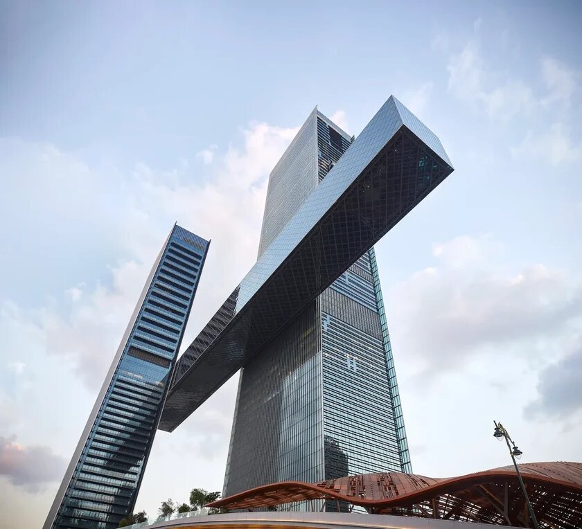 Дубай полон привлекательных зданий, но недавно построенный шедевр One Zaabeel японской компании Nikken Sekkei, несомненно, выделяется даже среди них. Комплекс представляет собой две соседние башни. Их соединяет длинный горизонтальный мост-консоль. Высота одного небоскреба достигает 235 м, другого — 305 м. По данным New Atlas, внутри них расположены квартиры, офисные помещения, рестораны и как минимум один отель. Перекладина, получившая название The Link, прикреплена к обеим башням на высоте 100 м. Под ней расположено оживленное шоссе. В этой части небоскребов находится бассейн и смотровые площадки с видом на Бурдж-Халифа, самое высокое здание в мире. «66-метровая консоль The Link — самая длинная в мире. Она создает у посетителей иллюзию парения в воздухе, — говорят в Nikken Sekkei. — The Link был создан с использованием прочной внешней трубчатой конструкции, основные стальные элементы которой расположены в виде ромбовидной сетки вдоль четырех сторон, чтобы минимизировать скручивание
