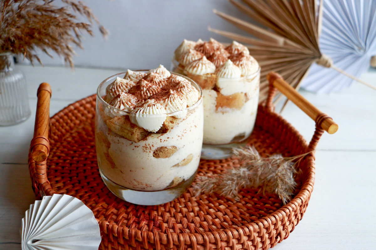 - Печенье по 1й штуке окуните в кофе (сахарной стороной), выложите в красивые стаканы в один слой, далее добавьте порцию крема, затем какао, слои нужно повторять до конца, последним слоем должен быть крем.