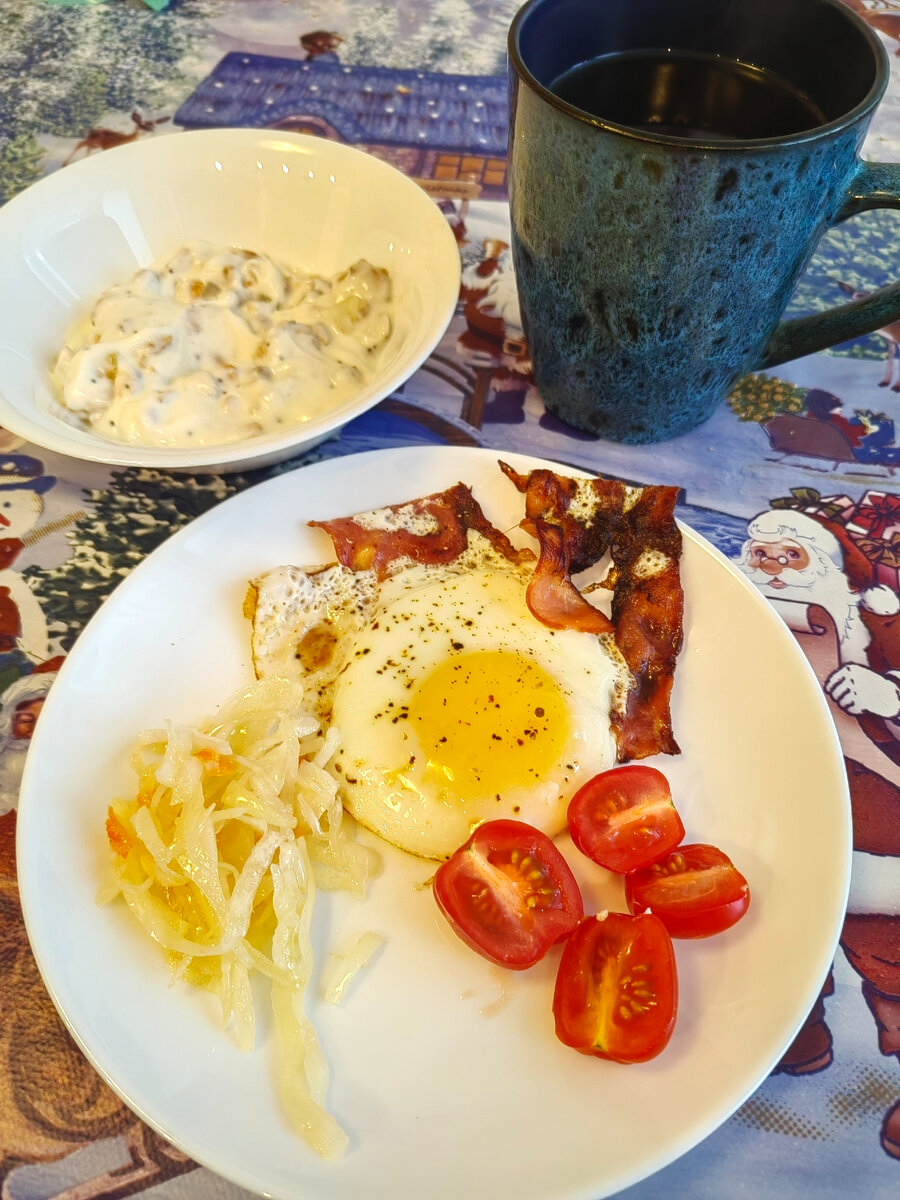 Сегодня именно такой день! ❤️ Я сознательно запланировала его лучшим с начала этого года. Правда с самого утра я еще этого не знала. Для начала решила, что он будет просто хорошим) ☺️ Поэтому приготовила себе вкусный завтрак. Очень люблю яичницу с беконом. Много яиц не разбиваю. Мне достаточно и одного. Со сладкими черри и квашеной капустой - прям огонь!) Еще ела мюсли с орехами и свежими фруктами. Заправлены они греческий йогуртом без сахара. И вопреки своей многолетней привычке я пила не кофе, а крепкий чай. Все вместе это было очень вкусно и дало мне заряд бодрости и энергии на уборку. Впереди выходные, и как-то не хочется их омрачать мытьем полов и разбиранием стирки. Хотя на самом деле хотелось снова погулять по магазинам. Я даже маме эту идею предложила. Повод легко найти. Например, выбрать красивое платьице в подарок новорожденной дочке моей подруги) Если бы не гул и завывания ветра за окном, то можно было бы легко собраться и пойти на прогулку до самого торгового центра.