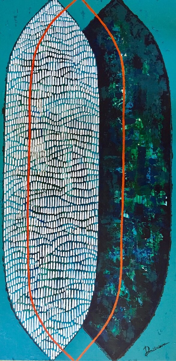 Это картина из акрила современной молодой художницы Дарьи Дмитриевой. Дарья использует яркие свежие, но не раздражающие цвета, которые могут ассоциироваться с летом и отпуском. Как говорит о своей работе сама художница: «Это морской бриз во время знойного лета». Картина поможет отвлечься вашему руководителю в перерывах между важными переговорами и напомнит о том, что в жизни есть не только работа.