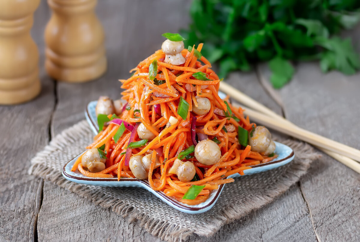 Корейская морковка:) Как много в этом звуке для сердца русского слилось... - перефразируя классика. А почему в названии статьи СССР? Да потому, что у корейцев нет такого блюда. Называть это блюдо «корейским салатом» на самом деле не правильно. Его не готовят в Корее. «Морковь по-корейски» родом из Советского Союза. Блюдо "салат ХЕ" было популярно в среде «корё-сарам» (советских корейцев - выходцев из Северной Кореи). Они переселились в Россию ещё до революции, а при Сталине были депортированы из Приморья в Среднюю Азию. В традиционной корейской кухне принято мариновать свежее мясо или рыбу, используя сок и мякоть редиса или редьки, моркови, а также уксус и острые специи. Так как в СССР морковь была доступнее, чем редис, то постепенно она и вытеснила привычный овощ. В период освоения целинных земель в 1956-1961 гг. с наличием и хранением свежей рыбы и, тем более, свежего мяса были проблемы. Поэтому постепенно из составляющих салата «Хе», который пытались готовить целинники-корейцы, ос