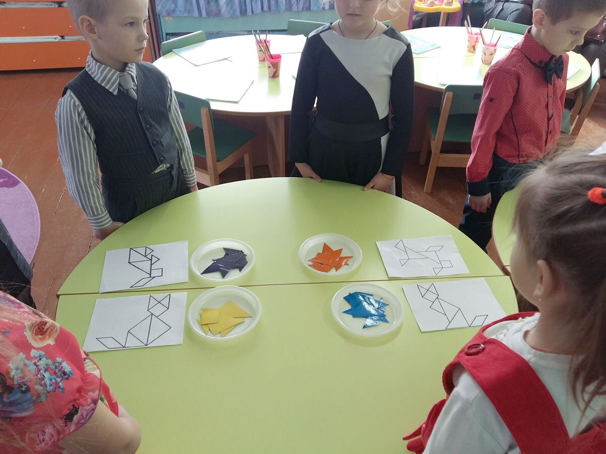 В. Сейчас давайте узнаем, сколько было похитителей. Для этого каждому нужно найти свою пару следов. Например, (называет имя ребёнка), у тебя какой размер следа? (Шестой.) У кого ещё след шестого размера? (Второй ребёнок обозначает себя.) Замечательно, у нас получилась пара следов обуви шестого размера.