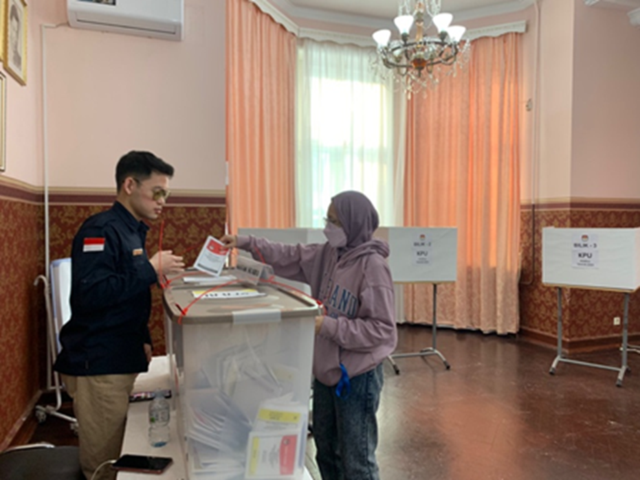 С приближением конца зимы, за четыре дня до всеобщих выборов в Индонезии, которые состоялись в субботу, 10 февраля 2024 года, в посольстве Индонезии в Москве, являются одной из веских причин того, что бы эта дата являлась праздником для рабочих, диаспор и студентов в России и Беларуси таким образом, у избирателей появляется больше возможностей присутствовать на избирательных участках. Кажется, что эти выборы были подготовлены максимально тщательно. Задолго до создания комитета, избиратели также подготавливали необходимую информацию, такую как официальный веб-сайт, сообщения в социальных сетях и так далее. Представители диаспоры, такие как индонезийские рабочие-мигранты и студенты, помогают разъяснить шаги по участию в выборах и проводили встречи в различных регионах Российской Федерации, чтобы рассказать, что необходимо для регистрации в качестве избирателей. Почтовой доставкой Учитывая размеры территории Российской Федерации и распределение индонезийских граждан по различным реги
