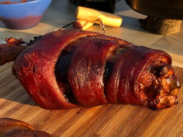 Ее величество свиная рулька на мангале Weber, хотя вместо "Шарика" Weber вы можете использовать любой шарообразный мангал, стальной или керамический не важно. Открою Вам секрет, готовить свиную рульку именно на мангале гораздо проще чем в квартире на плите, уж поверьте мне я ее готовил разными способами и уверяю вас, этот самый простой. Как нибудь я обязательно напишу рецепт как готовить рульку в домашних условиях ну а пока, летим дальше! И так, если у Вас собирается большая компания и вы задумались над тем, чем почивать ваших гостей, то вы попали в правильное место. Это очень сытное блюдо и уж поверьте мне мужики, а я уверен что готовить его будут мужчины, девочкам оставим пирожки и салатики, а мясо это мужская "тема" P.S. ну вот как не толерантно я отшил наших любимых женщин, не обижайтесь, но рулька это мужское блюдо в плане готовки. А вам наши любимые, мы обязательно выберем в качестве первых дегустаторов. Что нам понадобится для приготовления, по мимо хорошего денька, вечернего