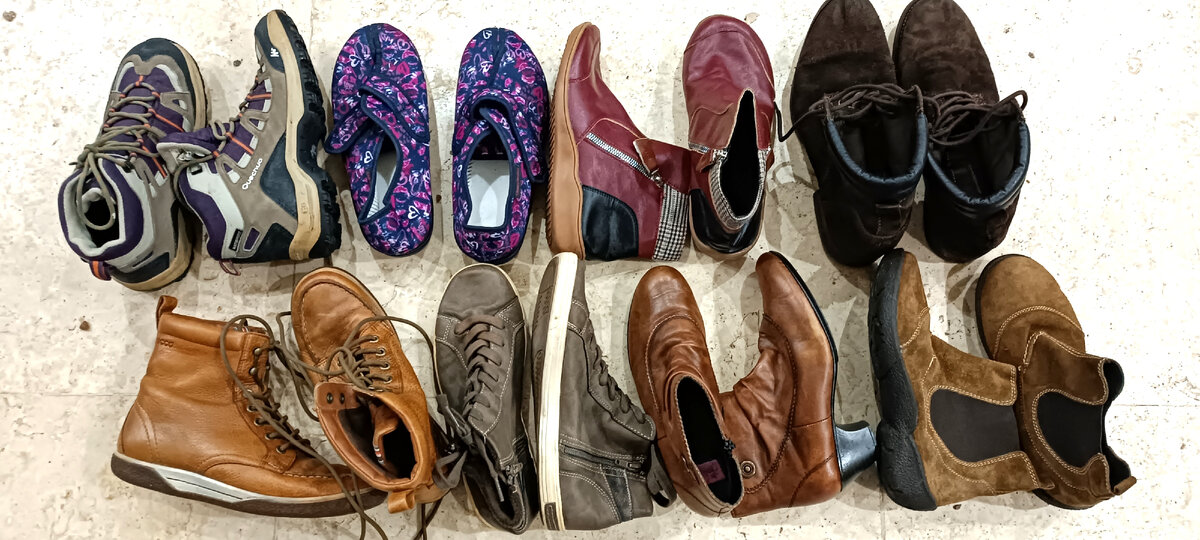Отсняла все, что привезла в третий раз. До того, что в первый раз купила, пока руки не дошли еще. Кто тут впервые, тому расскажу, что мы сейчас собираем деньги на покупку вещей для оставшихся безо всего людей. Год назад мы помогали пострадавшим от землетрясения на севере Сирии. Отправили 230 больших мешков одежды и обуви, 20 стиральных машинок. Вещи покупаются в распродажных магазинах. В конце сезона цены бросовые. Вот обувь. Желтые ботинки внизу Ессо. Еще купила несколько игрушек. Мне обещали найти тюки с игрушками, так что можно будет потом еще накупить. Они очень легкие, а продаются на вес. Еще есть шали. Некоторые зимние и очень теплые. Вещь актуальная. Не забываем, что большинство женщин мусульманки и платки им необходимы. Ну и одежда. Курточки, кофточки, пижамы. Ползунки для совсем маленьких. А еще купила вот такую фиолетовую штуку для девочек. Шелковая. На ней вышит металлизированными нитками павлинчик. Представьте, как ребенок его любить будет! А вот эту кофту с ушами я в
