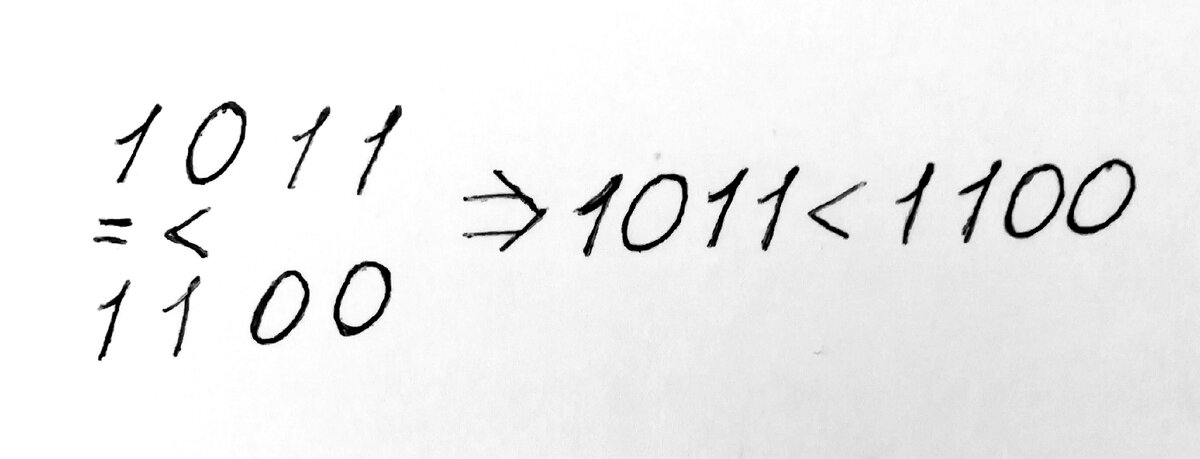 Если мы сравним их по разрядам, то получим: 000<001<010<011<100<101<110<111.