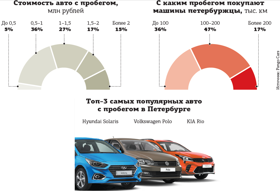 Свою статистику старения рынка, правда уже по итогам января, представили и аналитики автомобильной системы Pango Cars. По их данным, в первом месяце текущего года самым продаваемым авто с пробегом в Северной столице стал Hyundai Solaris, за которым следуют Volkswagen Polo и Kia Rio.