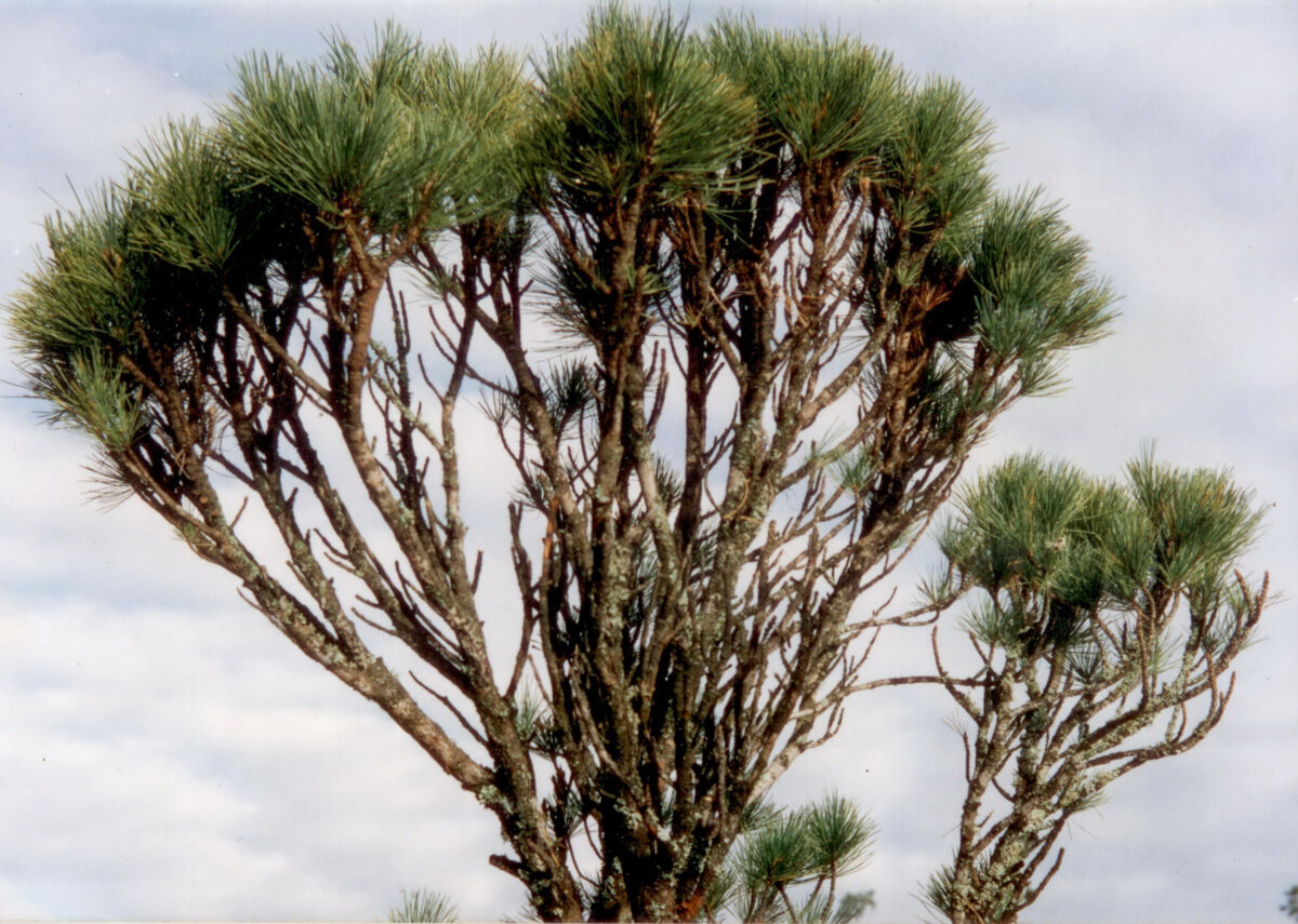 Наша родная Томская область довольно большая. По площади она чуть меньше Германии. Всей этой площадью она размещается внутри кедрового ареала. Нам по роду нашей научной деятельности доводилось работать в разных районах Томской области. Так, в Верхнекетском районе, это граница между южной и средней подзонами тайги, мы в течение нескольких лет изучали, как изменяется структура кроны кедра с возрастом. Кедр в этих местах первые 100 лет живет под пологом березы, постепенно подрастает, набирает силу. К возрасту 150 лет он выходит в верхний ярус древостоя и начинает плодоносить. К возрасту 250 лет крона достигает максимального развития, а насаждение в целом – максимальной урожайности ореха. После 350 лет крона разрушается, дерево гибнет. Именно на 350-летнем дереве и была найдена та ВМ, вегетативное потомство которой мы будем сегодня обсуждать. Выглядела она вот так: