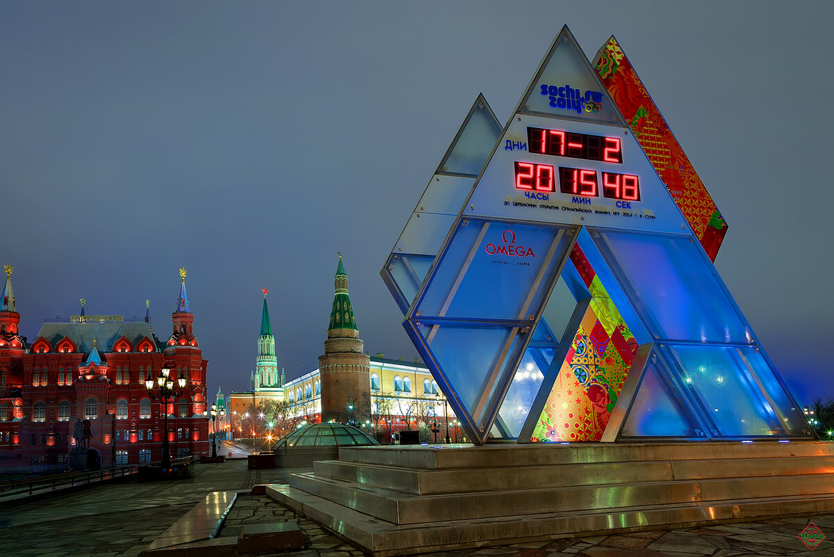 2024 год начался под эгидой 10-летия Зимних олимпийских игр в Сочи. Но поговорим мы не о выдающихся достижениях наших атлетов, а о символике и украшениях Москвы к грандиозному мероприятию, а было этих украшений не так много и многие скажут, зачем украшать столицу, если игры проходили в Сочи? И есть в этом свой резон, но Москва это лицо страны, она является главный транспортным узлом для гостей столицы и должна держать марку. Мною было обнаружено всего три крупных арт-объекта на заданную тему (растяжки в метро не беру) и я прошу читателей, если у кого-то остались фотографии, поделитесь пожалуйста ими в комментариях. В мире существует множество олимпийских часов, которые были установлены в разных странах в честь Олимпийских игр. Например, в Лондоне есть Олимпийская башня, на которой установлены часы, символизирующие игры. В Сиднее есть олимпийский парк, где установлены часы в виде олимпийского огня. В Париже - Эйфелева башня, на которую были установлены часы в форме олимпийских колец. В Нью-Йорке это знаменитые часы на здании Нью-Йоркской фондовой биржи, которые также символизируют Олимпийские игры. У нас, часы обратного отсчёта времени были установлены на Манежной площади, а так же в различных городах и значимых местах по всей стране. Эти часы, известные как “Часовня Олимпийского Огня”, были символическими маяками, отсчитывающими время до начала Олимпийских игр. Часы так же были установлены в Санкт-Петербурге, Новосибирске, Екатеринбурге, Самаре, Нижнем Новгороде, Казани, Ростове-на-Дону, Красноярске, Уфе, Перми, Воронеже, Волгограде и Сочи.