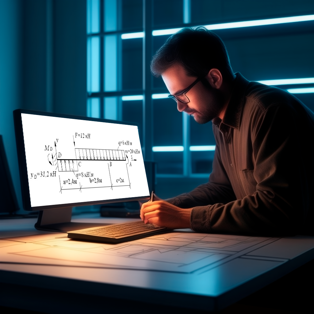 Необходимо построить эпюру поперечной силы Q, эпюру изгибающего момента M, определить максимальные напряжения в сечении. Балка выполнена из двутавра №40. Собственный вес балки не учитывается.