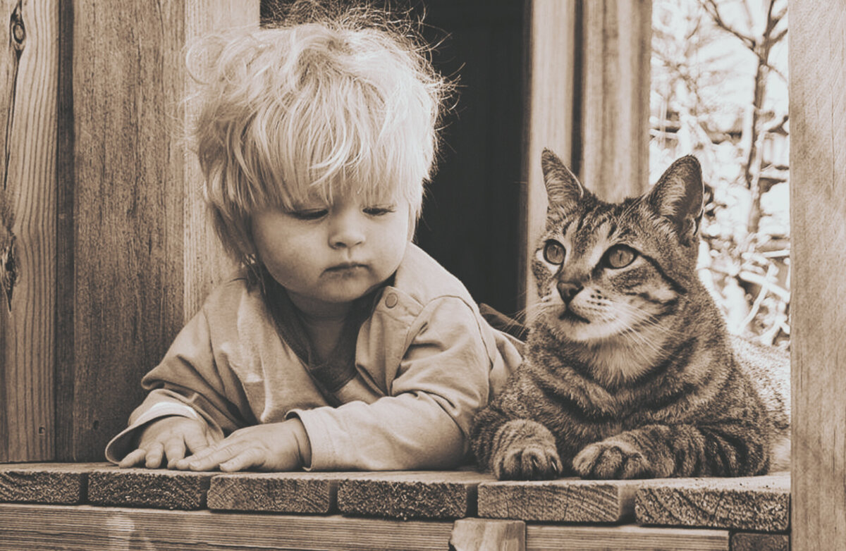 Единственному оставшемуся в живых ребёнку кошка отдала всю свою заботу и тепло, уча его выживать и делать то, что умеет сама.