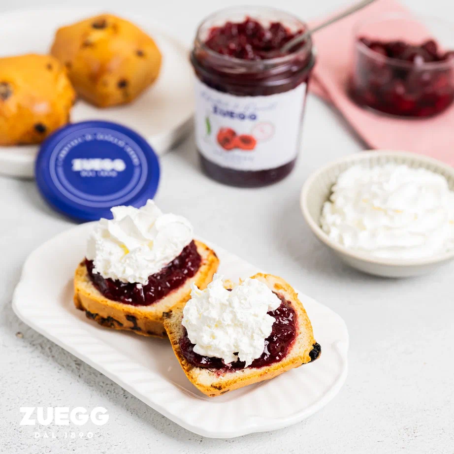 Если вы хотя бы раз приготовите сконы, то забудете о покупных булках навсегда. Поверьте, это безумно вкусно! Вам потребуется: — 150 г любых сухофруктов — Апельсиновый сок — 150 г холодного сливочного масла — 500 г муки — 2 ч.л. разрыхлителя — 2 ч.л. сахарной пудры — 2 яйца — 4 ст.л. молока — Взбитые сливки и вишневый конфитюр Zuegg для подачи. Совет: при необходимости добавьте немного молока, пока не получится мягкое сухое тесто. 6. Немного перемешайте, посыпьте мукой. 7. Накройте миску пищевой пленкой и поставьте в холодильник на 15 минут. 8. Раскатайте тесто на посыпанной мукой поверхности до толщины примерно 2-3 см. 9. Формочкой или стаканом вырежьте из теста кружочки и положите их на противень. Повторно раскатайте остатки, чтобы использовать все тесто. 10. Смажьте каждую булку молоком или сливочным маслом и запекайте в духовке 12–15 минут, пока они не поднимутся и не станут золотистыми. 11. В этот момент достаньте их из духовки и дайте немного остыть. 12. Разрежьте булочки пополам,