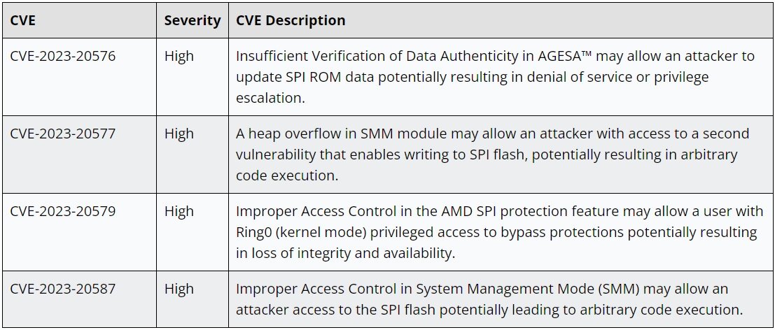 Компании AMD и Intel раскрыли информацию о найденных в системах со своими процессорами уязвимостях. В данный момент и "синие" и "красные" уже опубликовали обновленные BIOS с заплатками для всех этих уязвимостей. Найти таковые вы можете на сайтах производителей ваших материнских плат, а обновиться рекомендуется как можно скорее. Так AMD отчитались об обнаружении и исправлении четырех уязвимостей, одной из которых является Zenbleed. Никакого урона производительности процессоров эти правки не наносят. В это же время Intel отчитались о 34 уязвимостях, которые затрагивают не только процессоры, но также XTU, Thunderbolt, драйверы и многое другое. В данном случае для закрытия всех брешей в вашей безопасности банального обновления BIOS будет недостаточно, и вместе с ним придется обновить и кучу затронутых драйверов и приложений. О возможном уроне для производительности систем также не сообщается.